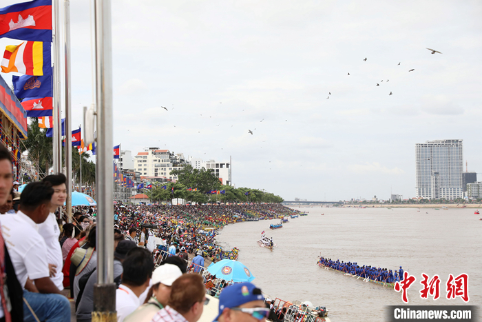 今年送水節(jié)活動是柬埔寨自2020年以來受到新冠疫情影響以及因2022年舉辦東盟峰會,時隔三年再度舉行。本次送水節(jié)舉辦的龍舟比賽,共有來自全國各地338只代表船隊角逐,超過2萬名劃手參與其中。