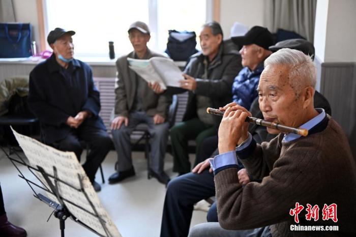 圖為11月27日,甘肅省蘭州市七里河區(qū)建蘭路街道吳家園社區(qū)養(yǎng)老服務(wù)中心內(nèi),老人們?cè)谏鐓^(qū)食堂就餐后進(jìn)行合唱練習(xí)。 中新社記者 九美旦增 攝