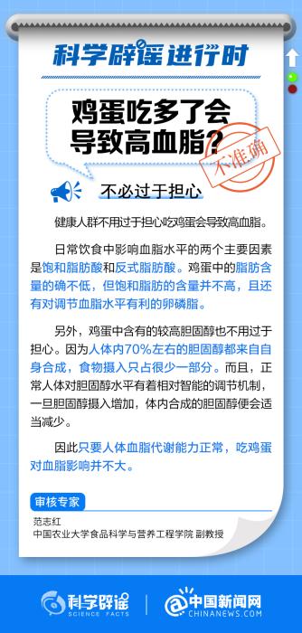 中新網(wǎng)11月27日電 只要人體血脂代謝能力正常,吃雞蛋對血脂影響并不大。日常飲食中影響血脂水平的兩個主要因素是飽和脂肪酸和反式脂肪酸。雞蛋中的脂肪含量的確不低,但飽和脂肪的含量并不高,且還有對調(diào)節(jié)血脂水平有利的卵磷脂。(來源:@科學(xué)辟謠 @中國新聞網(wǎng) )
