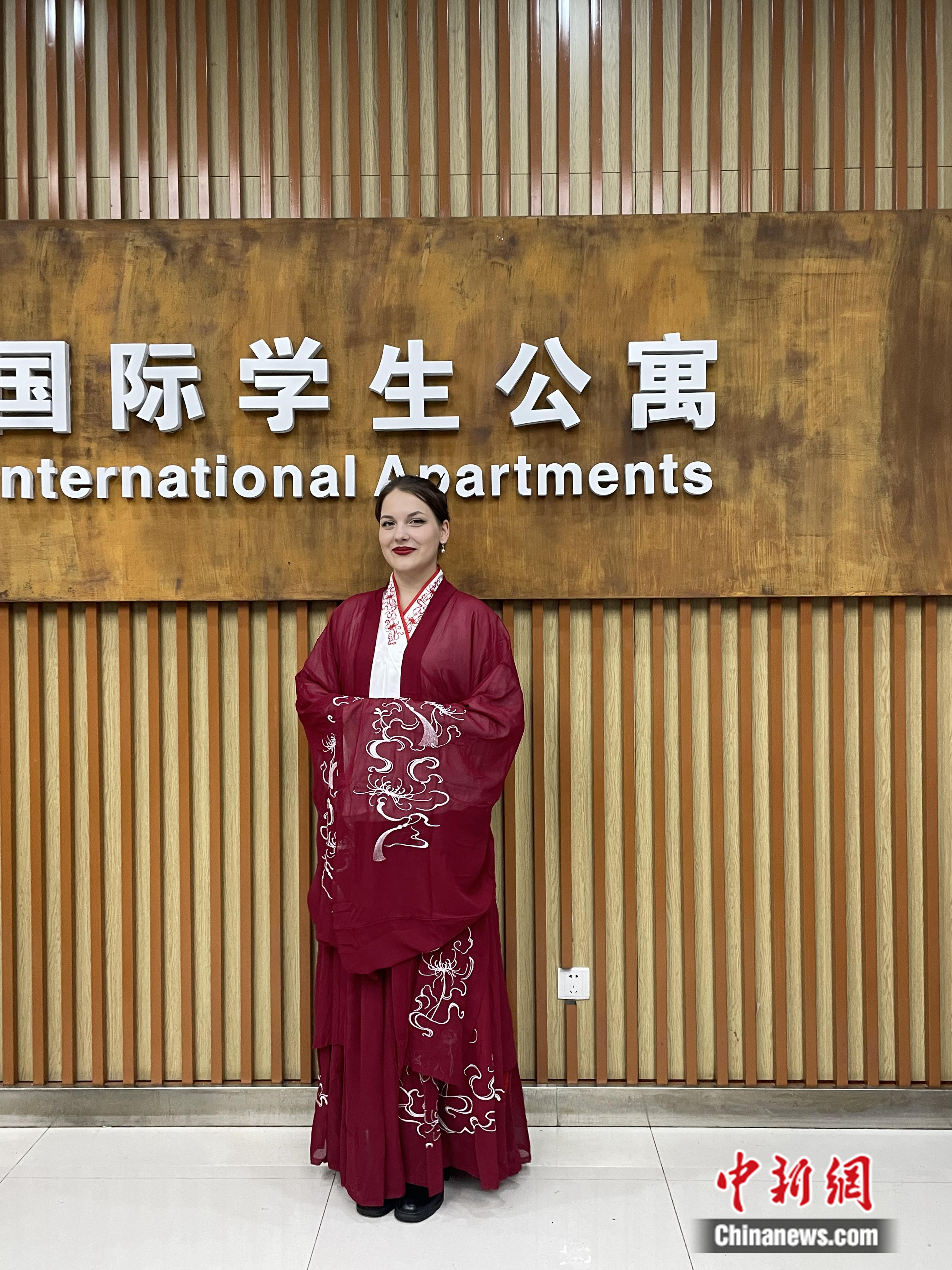 圖為欣薇在學校嘗試中國服飾。受訪者供圖