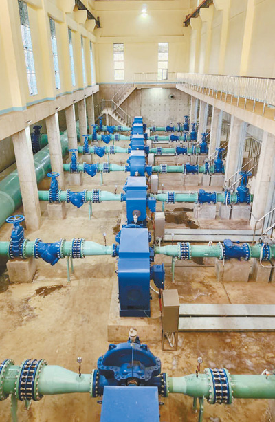 坦桑尼亞阿魯沙新供水系統(tǒng)項(xiàng)目由中國電建市政建設(shè)集團(tuán)有限公司承建。項(xiàng)目設(shè)計(jì)日供水量為12.5萬立方米/天,可滿足阿魯沙40萬人的用水需求。項(xiàng)目建成后將極大地改善阿魯沙市區(qū)的供水短缺問題,對推動當(dāng)?shù)亟?jīng)濟(jì)發(fā)展、增進(jìn)民生福祉具有重要作用。圖為阿魯沙新供水系統(tǒng)項(xiàng)目5號提升泵站內(nèi)景。