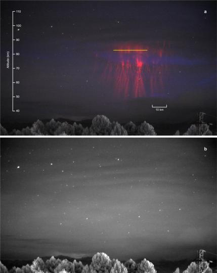 本項研究記錄于2019年9月21日的中層大氣現(xiàn)象(圖片來自論文)。施普林格·自然/供圖
