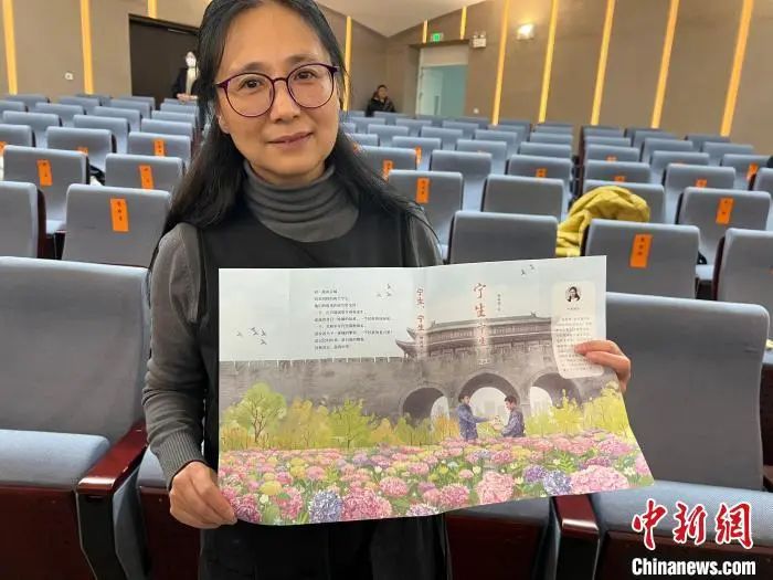 南京市長江路小學(xué)英語教師楊筱艷展示她創(chuàng)作的《寧生,寧生》書籍封面。朱曉穎 攝