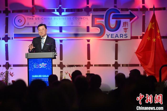 當(dāng)?shù)貢r間12月14日,美中貿(mào)委會成立50周年慶典活動在華盛頓舉行。圖為中國駐美大使謝鋒致辭。中新社記者 陳孟統(tǒng) 攝