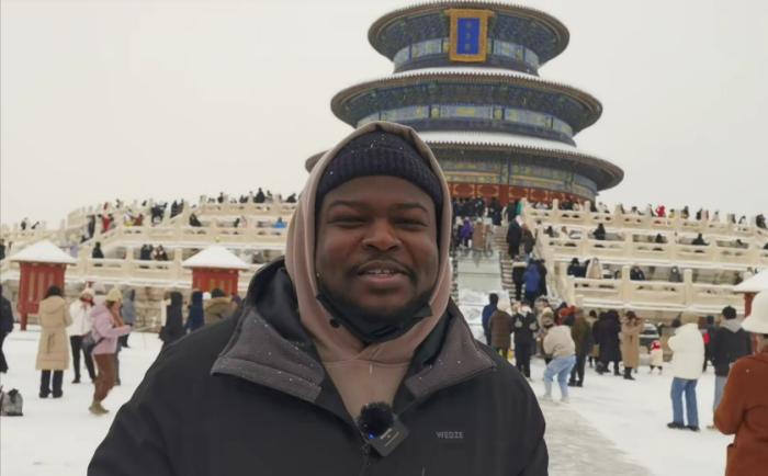 當(dāng)日正值大雪,銀裝素裹的天壇宛如一幅畫卷,古老的祈年殿在白雪的映襯下更顯莊重肅穆。留學(xué)生們沉浸在大雪紛飛的美景中,紛紛拿出手機(jī)互相打卡拍照,記錄下這美好瞬間。哈薩克斯坦籍留學(xué)生阿迪力(ARYSTAN ADIL)向記者介紹,這是他第一次來到天壇,“天壇是古代皇帝祭天祈雨的地方,我對中國的歷史很感興趣?!卑⒌狭φf。
