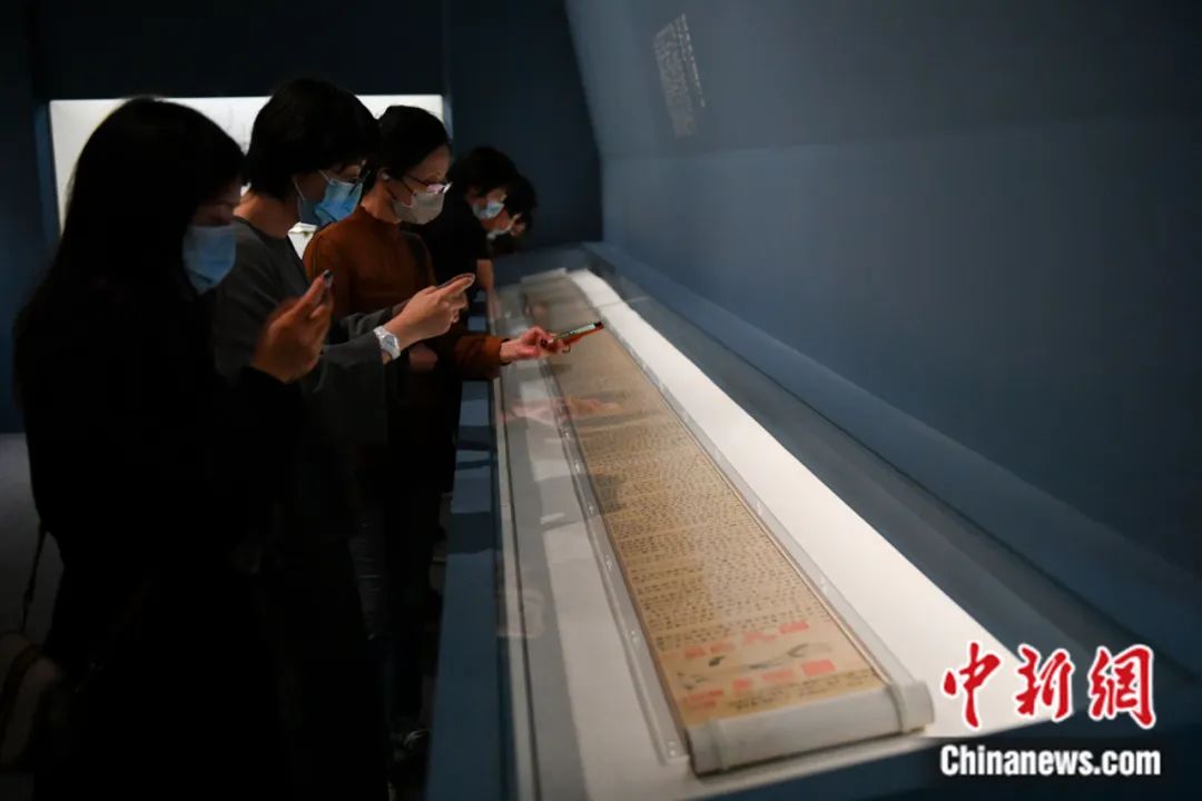 中國國家博物館展出的趙孟頫書《道德經(jīng)》卷吸引參觀者。趙文宇 攝