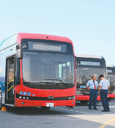 中國品牌的電動車停放在COP28的擺渡車停車場。COP28開幕以來,中國品牌的電動車為本次氣候大會提供服務(wù),增添了一道靚麗的風(fēng)景線。