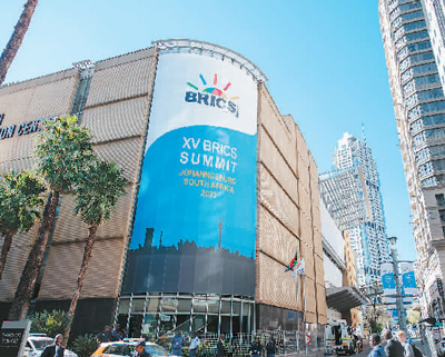 2023年8月23日,金磚國家領導人第十五次會晤在南非約翰內(nèi)斯堡舉行。圖為會場外景。