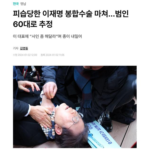 據(jù)報道,李在明2日在釜山出席活動時遇襲,頸部左側有約1厘米裂傷,在現(xiàn)場接受緊急止血,隨后送醫(yī)治療。當?shù)貢r間11點14分左右,李在明接受了縫合手術。