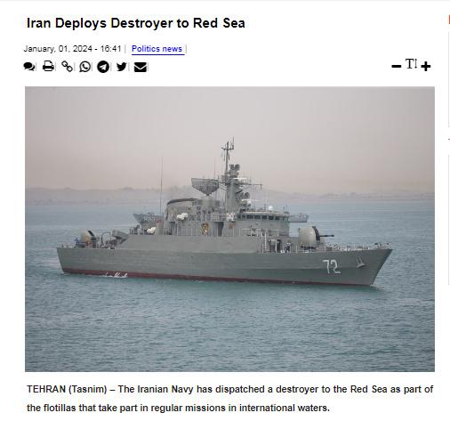 中新網(wǎng)1月2日電 據(jù)伊朗塔斯尼姆通訊社當(dāng)?shù)貢r(shí)間1日?qǐng)?bào)道,在紅海緊張局勢(shì)加劇之際,伊朗的“厄爾布爾士”號(hào)軍艦已經(jīng)穿過(guò)曼德海峽,進(jìn)入紅海。