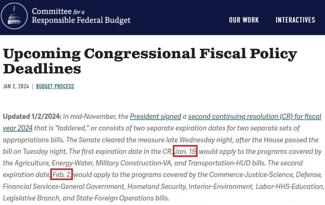 為避免政府停擺,美國(guó)國(guó)會(huì)去年11月通過(guò)一項(xiàng)“分段式”短期撥款法案,為大約20%的聯(lián)邦政府機(jī)構(gòu)撥款至今年1月19日,為另外大約80%的機(jī)構(gòu)撥款至2月2日。