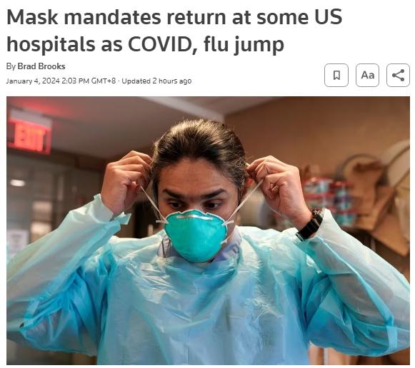 中新網(wǎng)1月4日電 據(jù)路透社當(dāng)?shù)貢r(shí)間3日報(bào)道,由于新冠病毒和季節(jié)性流感等呼吸道疾病病例激增,美國至少有四個(gè)州的醫(yī)院重啟“口罩令”。紐約州、加利福尼亞州、伊利諾伊州和馬薩諸塞州的醫(yī)療衛(wèi)生機(jī)構(gòu)恢復(fù)要求醫(yī)護(hù)人員和病患戴口罩的規(guī)定。