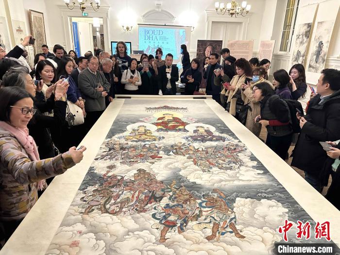 法國前國會議員陳文雄在致辭中高度評價夏荊山佛教繪畫作品對中華文化傳承的貢獻。他表示相關(guān)活動也對中法建交60周年、特別是促進兩國文化交流方面具有意義。他呼吁法中兩國民眾能夠多多參與有關(guān)活動,為深化兩國交流合作添磚加瓦。