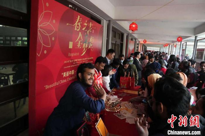 此次活動,受到達(dá)卡大學(xué)師生及當(dāng)?shù)孛癖姷臍g迎。數(shù)百份“?!弊?、春聯(lián)、年畫、中國結(jié)、燈籠,營造濃濃的節(jié)日氛圍;近3000人次學(xué)生體驗(yàn)寫福字、穿漢服等傳統(tǒng)文化;精彩的舞獅表演贏得陣陣喝彩;“恭賀新春”打卡區(qū)更是排起長龍……