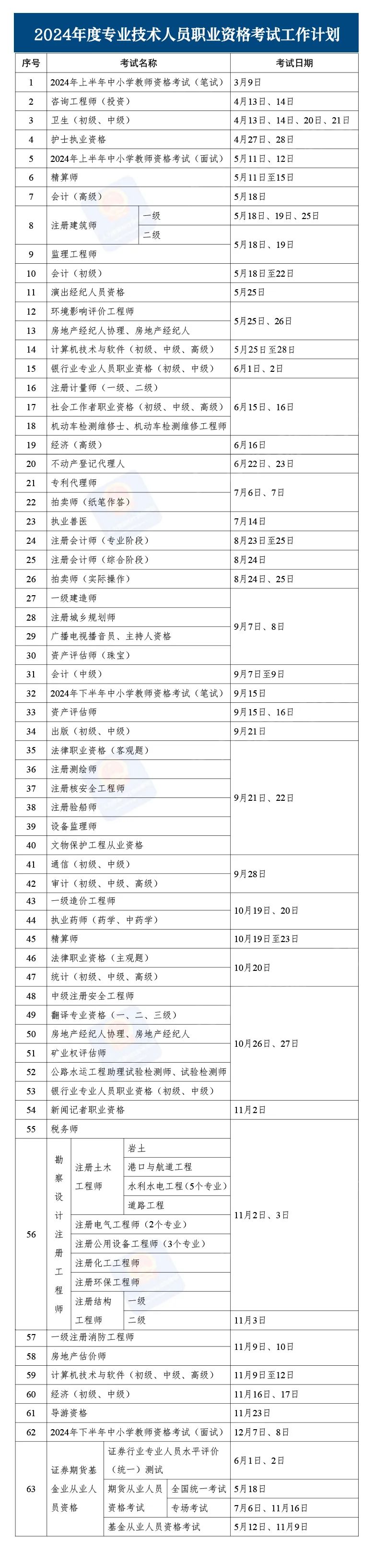 中新網(wǎng)1月17日電 近日,人力資源社會(huì)保障部辦公廳印發(fā)《關(guān)于2024年度專業(yè)技術(shù)人員職業(yè)資格考試工作計(jì)劃及有關(guān)事項(xiàng)的通知》,明確了考試時(shí)間表。