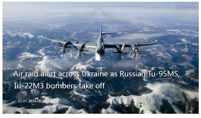 中新網1月23日電 據烏通社23日報道,烏克蘭全境拉響防空警報。報道稱,烏克蘭空軍記錄到當?shù)貢r間23日早些時候,多架圖-95轟炸機和圖-22轟炸機從俄羅斯起飛。