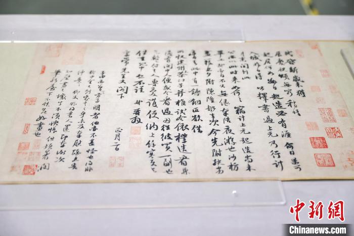 圖為展出的黃庭堅(jiān)《惟清道人帖》真跡。中新網(wǎng)記者 駱云飛攝