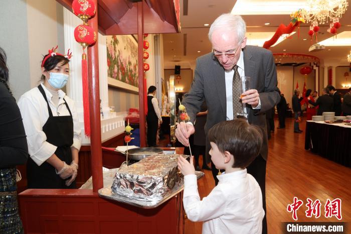 當(dāng)?shù)貢r(shí)間2月1日晚,加拿大首都渥太華,中國駐加拿大大使館舉行2024年春節(jié)招待會(huì)。圖為現(xiàn)場制作的中國風(fēng)味小吃冰糖葫蘆吸引來賓品嘗。中新網(wǎng)記者 余瑞冬 攝