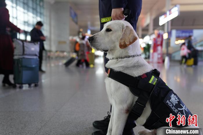 “見(jiàn)習(xí)”警犬“斯諾”的首個(gè)春運(yùn):抵御美食誘惑方“過(guò)關(guān)”