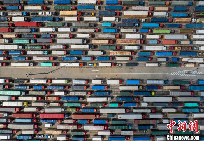 2月5日??谛潞8?,等待出島的車輛被分流為小車和貨車。中新網(wǎng)記者駱云飛攝