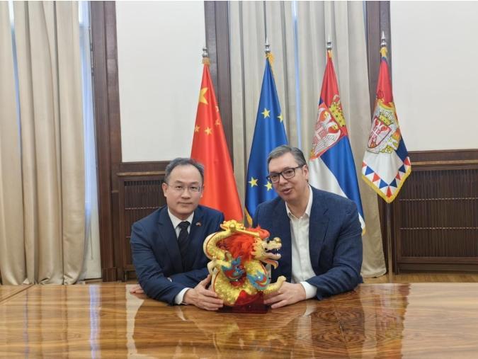 據(jù)報(bào)道,武契奇當(dāng)天在塞總統(tǒng)府會(huì)見中國駐塞大使李明。武契奇向習(xí)近平主席和中國人民致以誠摯的新春祝福,祝愿中國繁榮昌盛,祝愿中國人民新春快樂、闔家安康、生活幸福。
