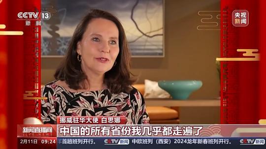 挪威駐華大使 白思娜:我在中國(guó)過(guò)了好幾個(gè)春節(jié),有的時(shí)候我就留在北京,有的時(shí)候又去別的地方,今年又留在北京。春節(jié)是關(guān)于家人,家人在一起,有很多好吃的,出去做好玩的事情。如果我們有機(jī)會(huì)跟中國(guó)人在一起過(guò)春節(jié),也是幫我們了解一下中國(guó)人的家庭、你們喜歡做的活動(dòng)。龍應(yīng)該是有力量、繁榮,我期待龍年是一個(gè)好年。