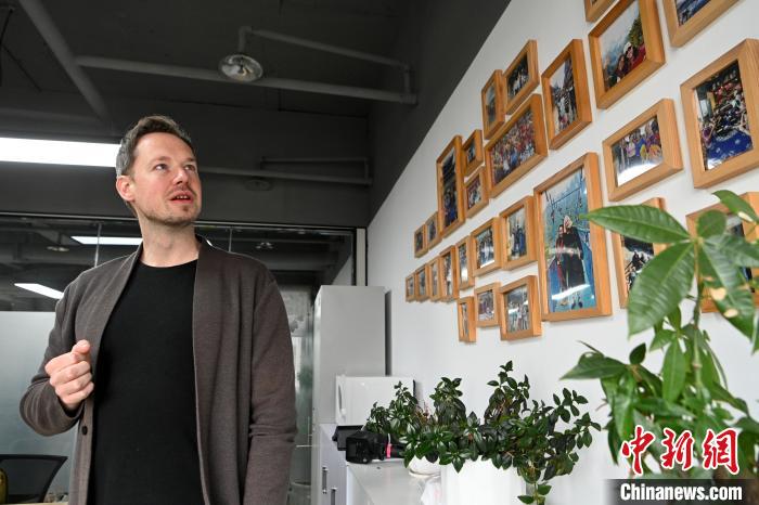 1月11日,李納德講述照片墻上外國(guó)人游覽中國(guó)的故事。中新社記者 李嘉嫻 攝