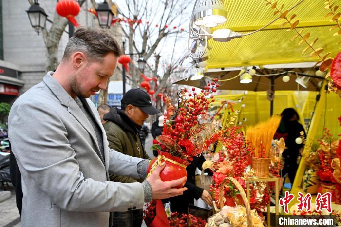 2月7日,李納德逛年貨街,選購(gòu)年宵花。中新社記者 李嘉嫻 攝
