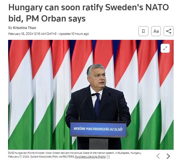 據(jù)報道,歐爾班表示:“這是個好消息,我們與瑞典的爭端很快就會得到解決?!?/p>