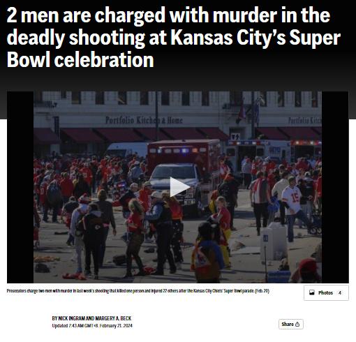 中新網2月21日電 據(jù)美聯(lián)社報道,當?shù)貢r間20日,一份公開的法庭文件顯示,美國堪薩斯城“超級碗”游行發(fā)生的槍擊事件中,兩名男子被控謀殺,報道稱“兩人在爭吵后不久掏出了槍并開槍射擊”。
