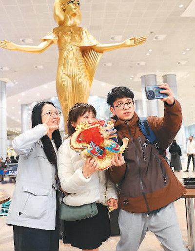 埃及是中國游客春節(jié)假期出境游的主要目的地之一。2月10日,開羅國際機場舉辦“歡迎中國游客來埃及過大年”儀式,迎接當(dāng)天抵達的300余名中國游客?!敖鹱炙ⅹ{身人面像、埃及博物館、卡爾納克神廟……今年來埃及的中國游客尤其多,幾乎每個景點都能看到中國游客的身影?!卑<皩?dǎo)游哈迪布告訴記者,春節(jié)是他最忙碌的時期。