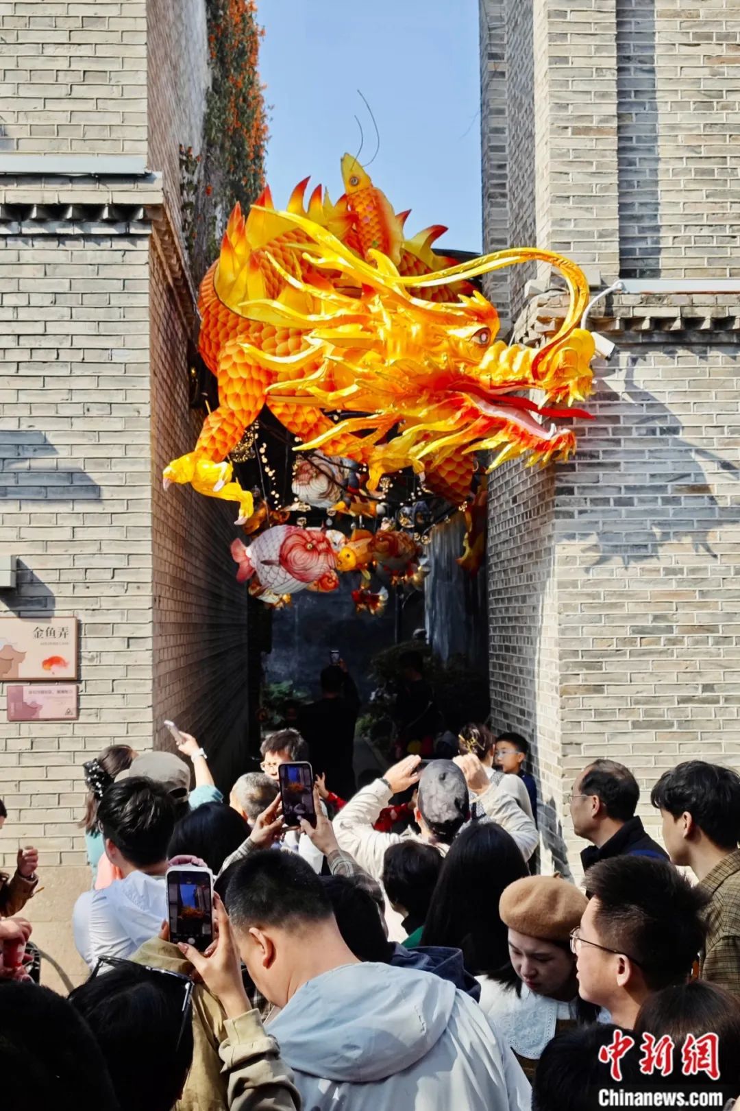 福州三坊七巷古街區(qū)游人如織,龍形燈飾點(diǎn)亮新春氛圍。中新社記者 王東明 攝
