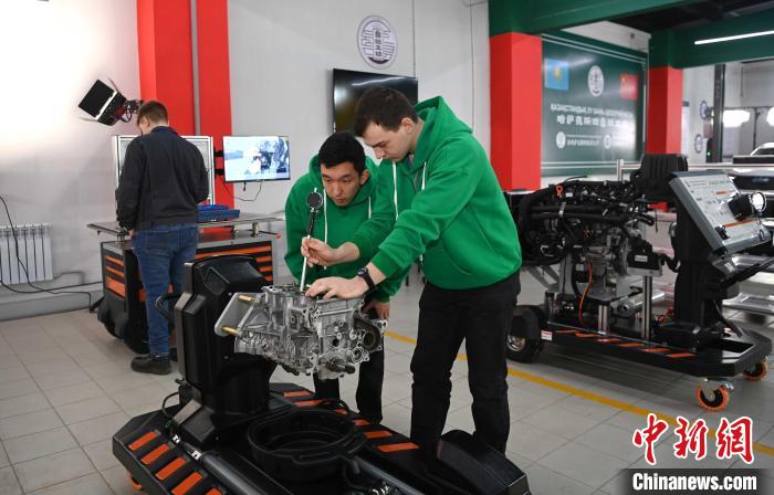 當?shù)貙W生在哈薩克斯坦魯班工坊內(nèi)實操演練?! 」偨y(tǒng)府官網(wǎng)供圖