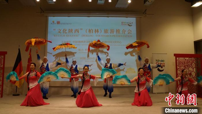 推介會(huì)現(xiàn)場(chǎng)還設(shè)置了陜西特色文創(chuàng)產(chǎn)品展示區(qū),展出農(nóng)民畫、剪紙、石雕、泥塑、棗木雕等非遺產(chǎn)品,讓與會(huì)嘉賓親身體驗(yàn)陜西的民間藝術(shù)和傳統(tǒng)技藝。來自陜西的藝術(shù)家們?yōu)閬碣e們表演了陜北大秧歌、腰鼓,演唱了《山那邊》《趕牲靈》《淚蛋蛋拋在沙蒿蒿林》《一對(duì)對(duì)鴛鴦水上漂》等極富特色的陜北民歌。推介會(huì)上來賓們交流探討陜西與德國在文化旅游領(lǐng)域的合作機(jī)遇和發(fā)展前景,氣氛熱烈。