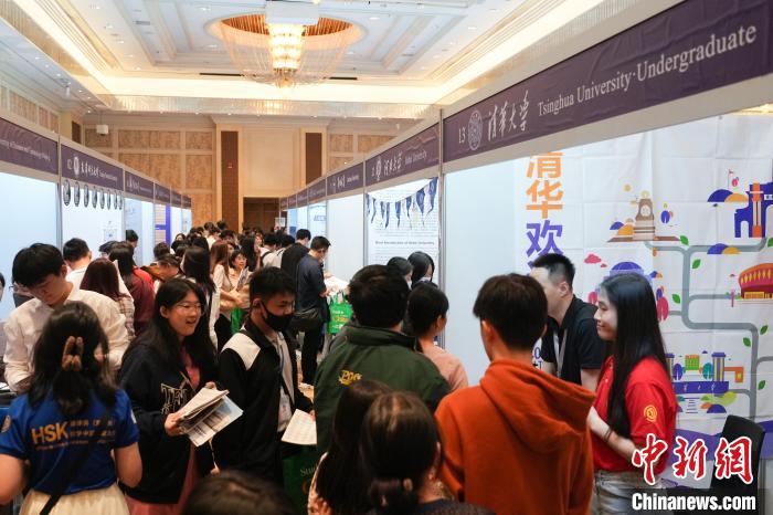 3月17日,展會尚未正式開幕,清華大學(xué)等高校展臺前已人頭攢動?!≈行律缬浾?張興龍 攝
