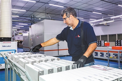 位于巴西亞馬孫州首府馬瑙斯的比亞迪電池工廠主要生產(chǎn)磷酸鐵鋰電池模組,為巴西的電動大巴提供可靠的新能源動力,推動了當(dāng)?shù)乜沙掷m(xù)能源產(chǎn)業(yè)的發(fā)展,為減少碳排放和環(huán)境保護(hù)作出了貢獻(xiàn)。圖為當(dāng)?shù)貑T工正在掃描電芯條碼。