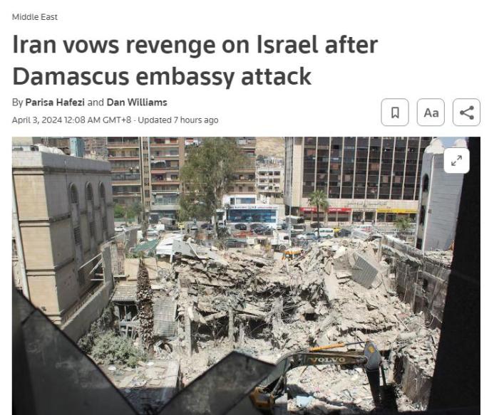 據(jù)此前報(bào)道,伊朗伊斯蘭革命衛(wèi)隊(duì)當(dāng)?shù)貢r(shí)間1日表示,伊朗駐敘利亞大使館領(lǐng)事部門(mén)建筑遭以色列襲擊,造成包括高級(jí)將領(lǐng)在內(nèi)的多名成員死亡。