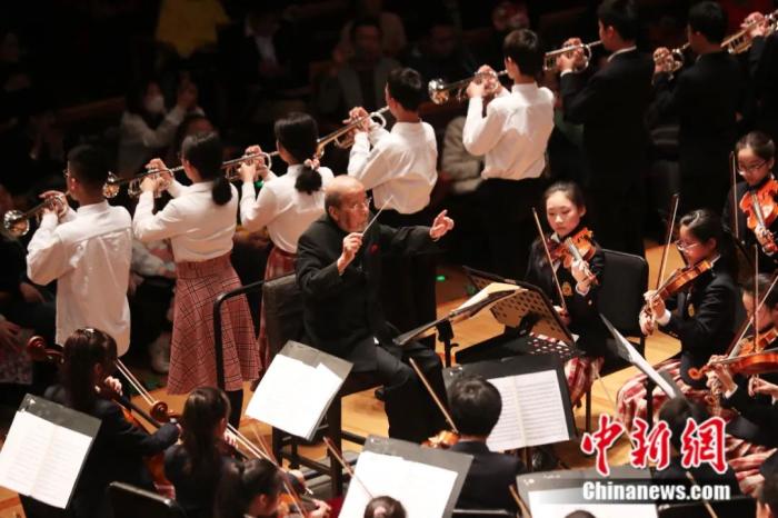 指揮家曹鵬向聽(tīng)眾揮手示意 中新社記者 張亨偉 攝
