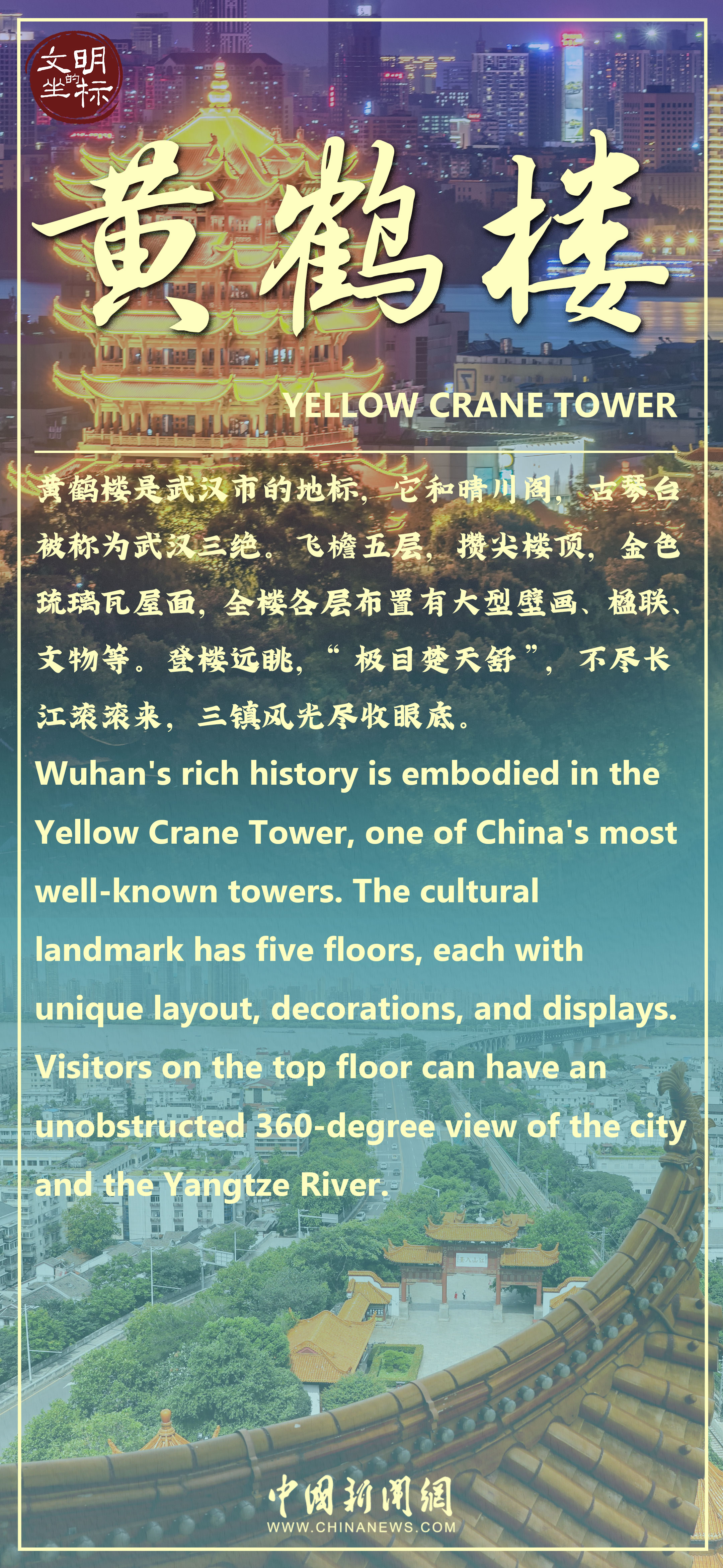 “昔人已乘黃鶴去,此地空余黃鶴樓。黃鶴一去不復(fù)返,白云千載空悠悠。”號稱“天下江山第一樓”的武漢黃鶴樓,在歷史上曾是無數(shù)文人揮灑墨香的靈感源泉。與其相關(guān)的詩詞約有1500首,屈原行吟于此、岳飛填詞于此、李白擲筆于此……豐厚的文化內(nèi)涵,令黃鶴樓成為“凝固的詩”“立體的畫”?!兑股宵S鶴樓》項目開啟了千年名樓沉浸式夜游新體驗,悠揚的旋律、炫酷的光影、古風古韻的歌舞,讓無數(shù)游客流連忘返。春光明媚,櫻花盛放,來武漢觀賞黃鶴樓的“櫻花版”新皮膚,感受千年名樓的非凡氣韻和文化精神。