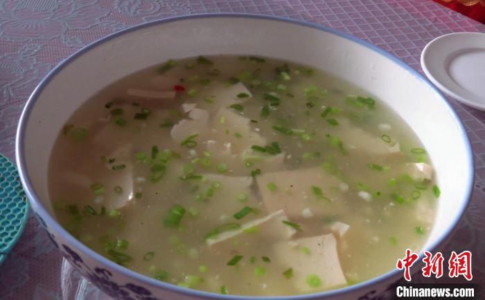 記者注意到,宴席上的豆腐被巧妙地搭配成各種佳肴。如豆腐燉魚頭、豆腐炒肉末、豆腐蒸蛋羹以及丸子、餃子和餅子等,每一道菜都展示著豆腐的可塑性。