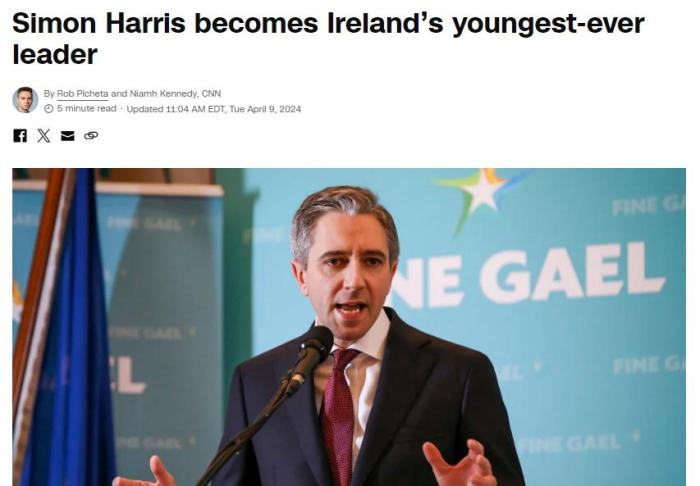 路透社稱,現(xiàn)年37歲的哈里斯是愛爾蘭歷史上最年輕的總理,曾任愛爾蘭衛(wèi)生部長、高等教育部長等職。