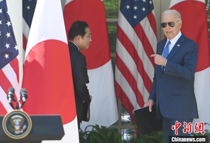 當?shù)貢r間4月10日,美國總統(tǒng)拜登與來美國事訪問的日本首相岸田文雄在白宮舉行會晤。圖為雙方出席聯(lián)合記者會。中新社記者 陳孟統(tǒng) 攝