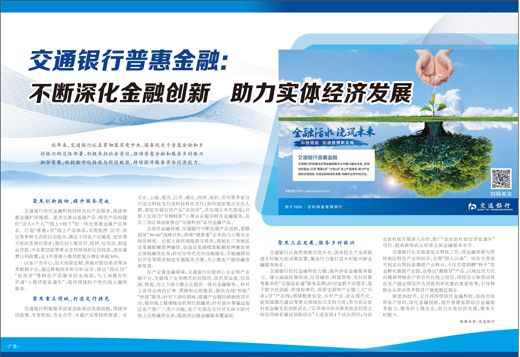 交通銀行普惠金融:不斷深化金融創(chuàng)新 助力實體經(jīng)濟發(fā)展