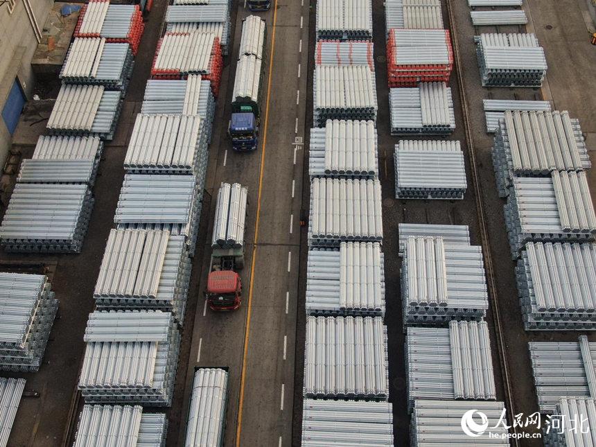 在河北省唐山市豐南區(qū)一家鍍鋅鋼管企業(yè)成品鍍鋅鋼管存放點(diǎn),貨車滿載管材準(zhǔn)備發(fā)車。崔光攝