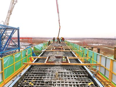 本報訊(記者 劉洋)1月12日,京雄高速公路(北京段)全線重點控制性工程永定河特大橋再傳捷報,經過16個小時的晝夜作戰(zhàn),作為京雄高速公路全線最大蓋梁的永定河特大橋西引橋20#墩蓋梁順利澆筑完成,這標志著永定河特大橋的上部結構施工帷幕業(yè)已拉開。