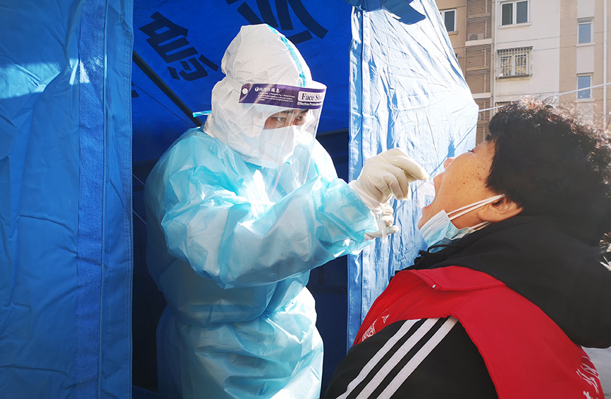 1月16日,本該是天津市津南區(qū)八里臺(tái)鎮(zhèn)衛(wèi)生院中醫(yī)科醫(yī)師郎峻域與丈夫陳剛的婚禮之日,然而一場(chǎng)突如其來(lái)的疫情打亂了他們?cè)镜挠?jì)劃。一周前,新娘郎峻域毅然奔赴戰(zhàn)“疫”一線,加入到核酸采樣隊(duì)伍中。對(duì)于婚禮,她最終和丈夫商定不再延期舉行,只是以連線的方式給倆人留個(gè)紀(jì)念。