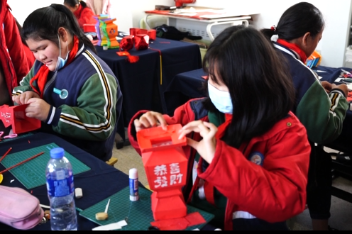 曹村鎮(zhèn)學(xué)校曼妙燈彩課程指導(dǎo)老師李仁秋說(shuō):“做一個(gè)虎年主題的燈彩,來(lái)迎接中國(guó)傳統(tǒng)的春節(jié),也感受下中國(guó)傳統(tǒng)的文化。”
