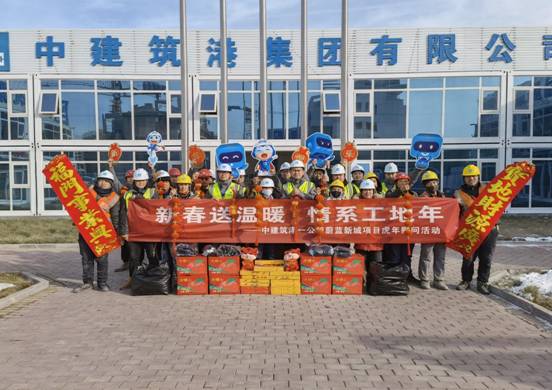 活動(dòng)現(xiàn)場,蔚藍(lán)新城項(xiàng)目領(lǐng)導(dǎo)班子親切地問候了一線工友,并將棉手套、棉帽子、耳罩、春聯(lián)等春節(jié)慰問品送到工友兄弟們的手中,希望大家能夠在寒冬感受到項(xiàng)目的溫暖和關(guān)懷。