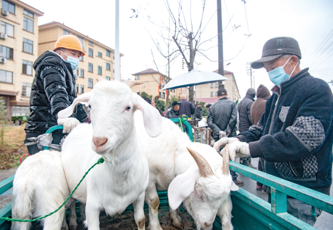 1月24日,金華市金義新區(qū)赤松鎮(zhèn)仙橋臘月第一個(gè)活羊集市開(kāi)市,各地農(nóng)戶運(yùn)來(lái)自家飼養(yǎng)的活羊上市交易。(時(shí)寬兵)