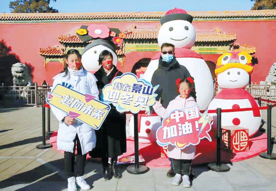 春節(jié)期間,游客在景山公園參與冬奧主題游園活動。